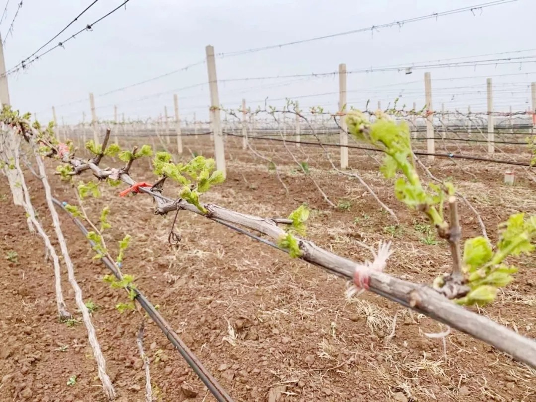 優(yōu)質(zhì)的葡萄原料來源于卓越的葡萄園,是釀造佳釀的基礎(chǔ),而作為原料提供者的葡萄藤每年都在不斷進行生命周期的輪轉(zhuǎn)。前段時間,葡萄園的工作人員還在進行剪枝、上架等工作,為葡萄藤在春天的快速生長做好準備工作。時至清明,春風和煦,草木青青,天氣清徹明朗,葡萄藤已經(jīng)發(fā)芽了,格瑞特莊園迎來了新的生長季。